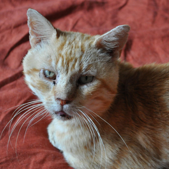 Azraël est un beau chat roux lâchement abandonné dehors par sa propriétaire qui pensait "qu'il serait plus heureux dehors"...