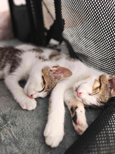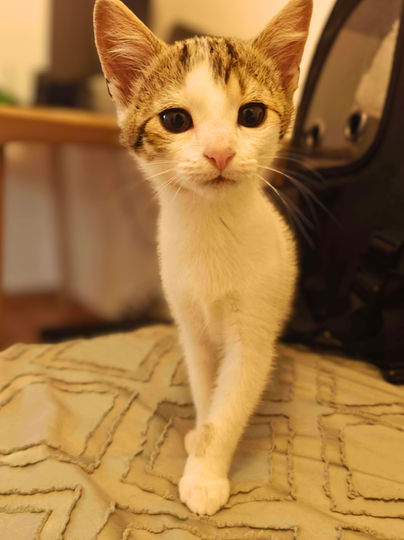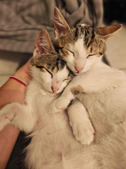 Jeté avec son frère Aube par-dessus un mur, Azur n’a pas eu le départ qu’un chaton mérite. Et pourtant, malgré ce traumatisme, il avance chaque jour, avec courage et curiosité. Ce petit mâle né autour du 14 avril fait des progrès fulgurants. Il commence à chercher le contact humain, il vient doucement vers nous, et surtout : il a lancé ses premiers ronrons tout récemment. Un petit miracle qui nous touche droit au cœur.