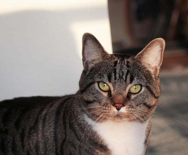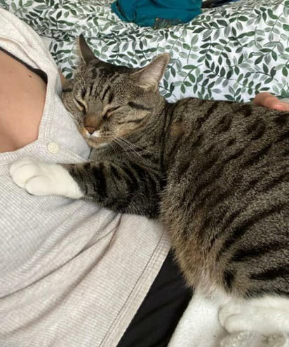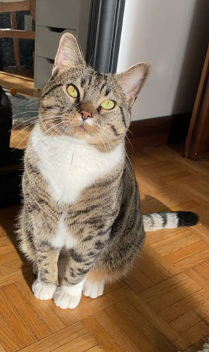 Hugo aime bien aussi suivre son humain dans les pièces en se frottant à ses jambes, souvent pour réclamer de l'attention ou de la nourriture.